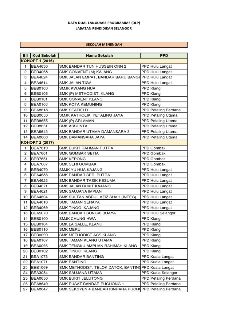 Senarai Sekolah Menengah Dlp Selangor Pdf Pdf